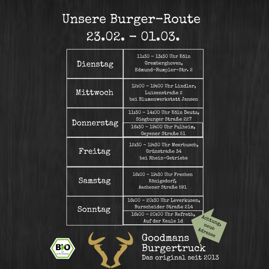 Die aktuelle Wochenübersicht mit allen Adressen findest Du hier: